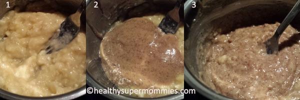 Incorporar la mezcla de mantequilla y banana a los ingredientes secos. Mezclar bien hasta lograr una masa homogénea.