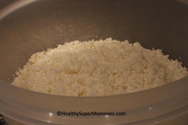 Colocar los trozos de coliflor cruda en un procesador y batir hasta que la textura se parezca al arroz.